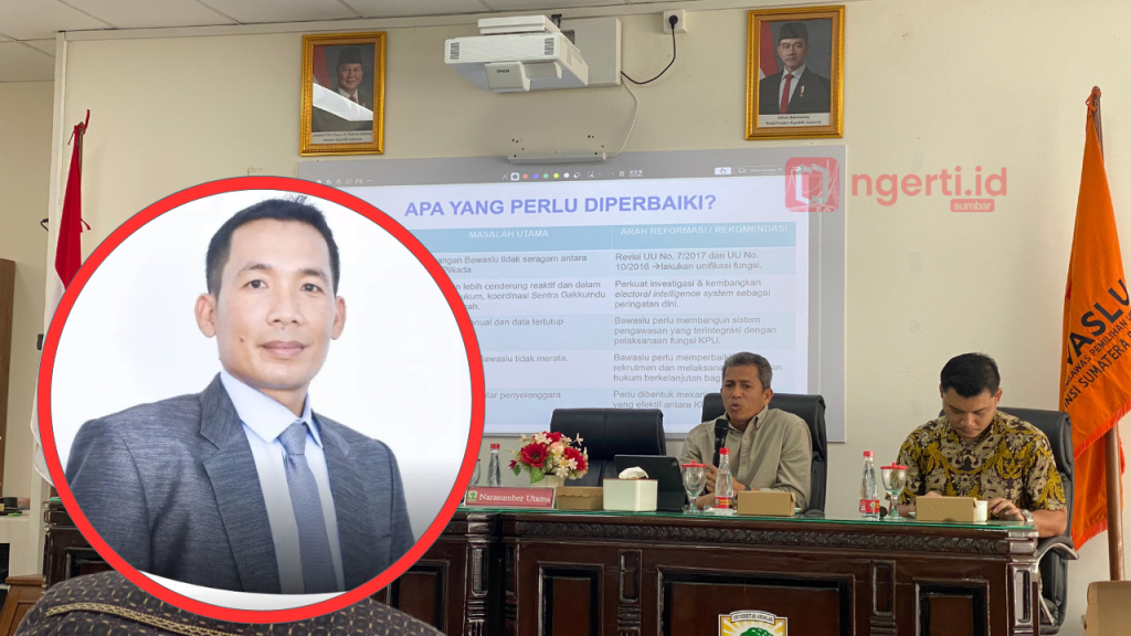 Padang, sumbar.ngerti.id – Salah satu narasumber penanggap dalam Focus Group Discussion (FGD) Evaluasi Tata Kelola Organisasi Pengawas Pemilu yang digelar Bawaslu RI di Universitas Andalas(7/10/2025), Rodi Chandra, mengemukakan pandangan kritis terhadap Putusan Mahkamah Konstitusi (MK) Nomor 135 yang memisahkan pelaksanaan pemilu nasional dan pemilihan kepala daerah.