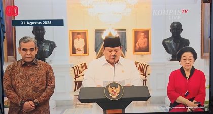 Nasional | Pemerintahan | Politik | • 31 Agustus 2025 • Didampingi Ketum Partai, Presiden Prabowo Nyatakan Sikap Terkait Kondisi Hari ini, Berikut Pernyataan Lengkapnya JAKARTA, sumbar.ngerti.id- Presiden Prabowo Subianto menyampaikan keterangan pers terkait kondisi Indonesia hari ini, Minggu (31/8/2025)....